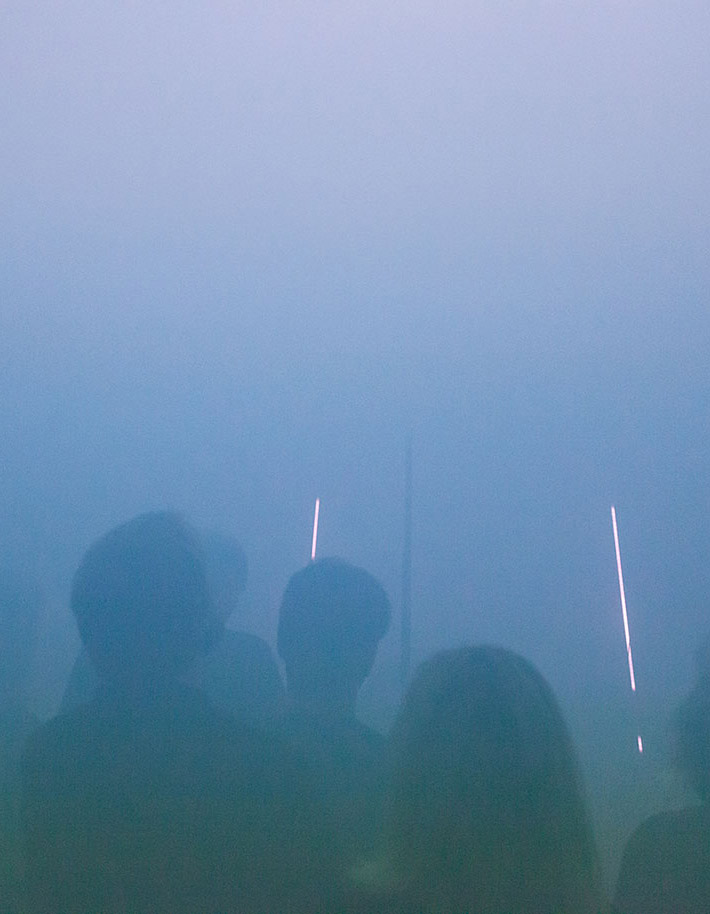 The work takes two forms: that of a ‘plug and play’ installation that operates on its own and that of a performance work that happens within, and interacts with, the installation. The work emerges out of a dialogue between the audience, the space, and the elements. This dialogue requires a specific relationship between the audience and the space in order to achieve freedom of movement. The work is contained by a start and an end point, but everything in between is performed live, in real-time, and can shift at any moment—creating a responsive journey that is in constant dialogue.